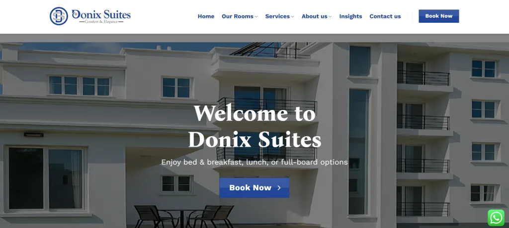 I designed a modern and user-friendly website for Donix Suites, a boutique hotel in Nakuru. The goal was to create a clean and welcoming online presence that makes it easy for guests to explore the hotel, view room options, and make bookings directly. The homepage highlights key features of the hotel, including available rooms, location, and contact options. I organized the rooms into categories—Standard Room, Standard Twin, and Executive Suite—each with clear descriptions and images. The website also includes a booking section, a photo gallery, and a simple contact form. I focused on making the design mobile-friendly, fast to load, and easy to navigate. The hotel team was very happy with the final result, and the new website has helped improve direct bookings.